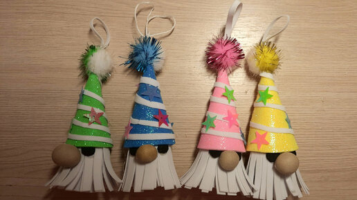 Как сделать новогоднюю елочную игрушку Гномик из фоамирана своими руками
