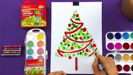 Уроки рисования для детей - рисуем Ёлочку на Новый год