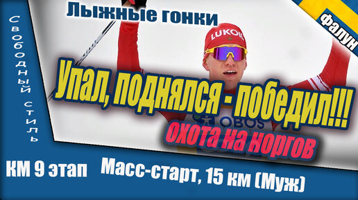 Упал, поднялся - победил! Это просто Большунов! // масс-старт 15 км// лыжные гонки.
