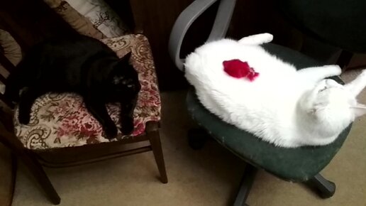 Положили кошкину игрушку на кота 🙀 Что будет делать кошка?