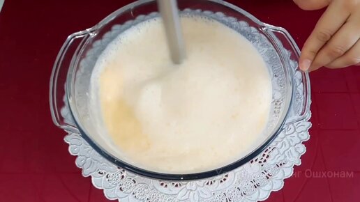 перемешайте яйцо с мандарином. Без воды,без молока