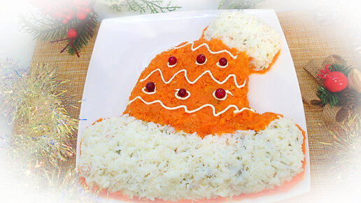 Еще один салат, который почти все делают на Новый Год. Спрятала его под шапкой Деда Мороза
