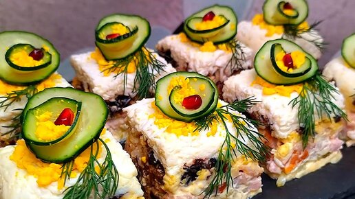 Закусочный торт "Восторг"! Сытный слоеный салат на Праздничный стол! Салат с курицей и черносливом🎄