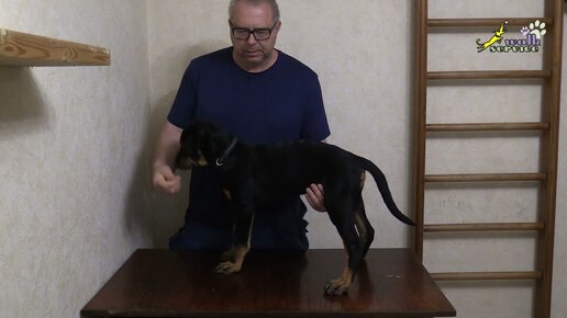 Учим поклон, промежуточная фаза при укладке из положения стоять, щенок босерон