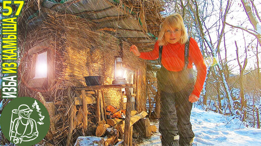 В Избе в −15° два дня подряд 🔥 Готовлю гигантский пельмень 🪓 Бушкрафт в Избе из камыша - Серия 57