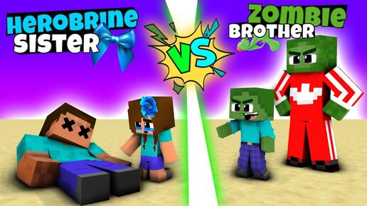 Monster School : Baby Zombie Brother VS Baby Herobrine Sister