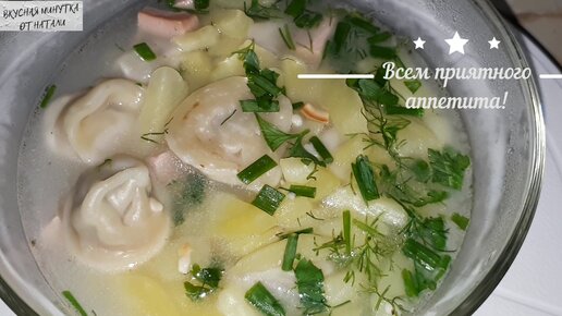 Вкуснейший сырный суп с колбасой,и пельмени..