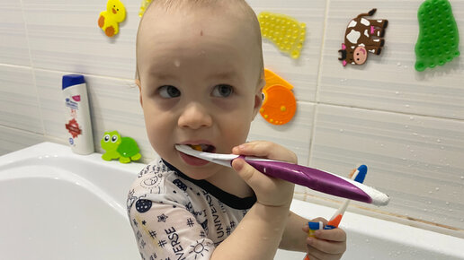 Малыш в 1,5 года подражает маме во всём. Как ребенок сам чистит зубки