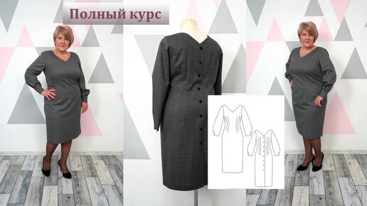 Красивое деловое платье с оригинальной застежкой по спинке. Полный пошаговый пошив от А до Я