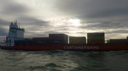 Расходимся с контейнеровозом |