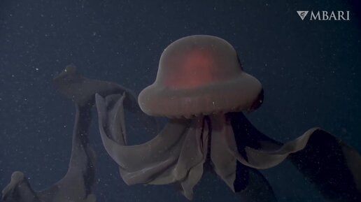 Морские биологи сняли редкую медузу с десятиметровыми щупальцами😱