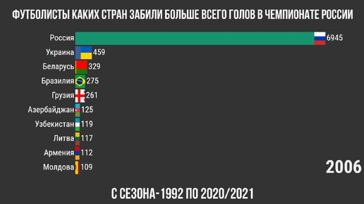 Футболисты из каких стран забили больше всего голов в Чемпионате России