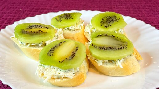 Приготовила к застолью новые бутерброды с киви: гости съели их за считанные минуты (на Новый год приготовлю побольше). Рецепт