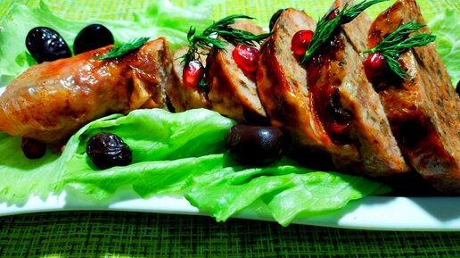 Голень индейки фаршированная с грибами и сыром.Это вкусней и полезней колбасы.