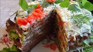 Торт печеночный с овощами. Деликатес к Праздничному столу!