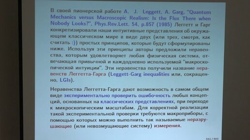 Никитин Н. В. - Матрица плотности - Принцип макроскопического реализма и неравенства Леггетта-Гарга