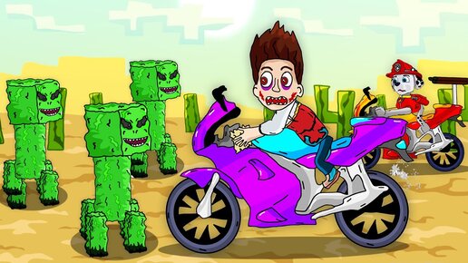 Щенячий патруль на мото против крипера из майнкрафта - мультики, minecraft and paw patrol