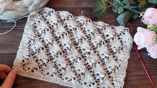 Вяжем вместе воздушный узор с соломоновыми петлями крючком для вязания палантина, шарфика