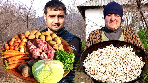 Борщ деревенский на сале| Расслабляющая деревенская жизнь влог Азербайджан | бабушка готовит