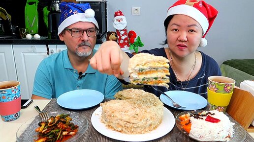 МУКБАНГ НАПОЛЕОН - ЗАКУСОЧНЫЙ, ПА КИМЧИ И ОСТАТКИ ТИГРОВОГО САЛАТА