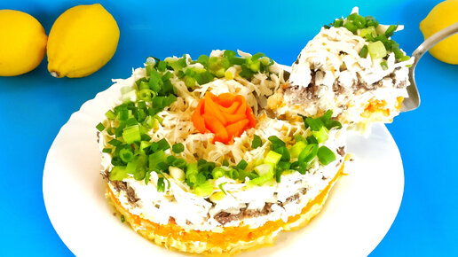 Салат "Фирменный" на Новый Год, праздничный стол со шпротами. Вкусный рецепт на новогодний стол