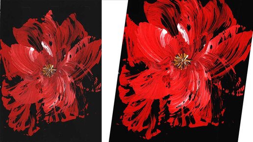 Необычный способ рисования. Интерьерная картина, красный цветок. Рисуем цветок легко