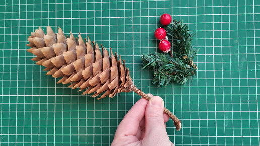 Украсила еловую шишку и сделала новогодний сувенир из простых и доступных материалов