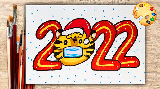 Рисунок - открытка на Новый год 2022. Пошаговое рисование