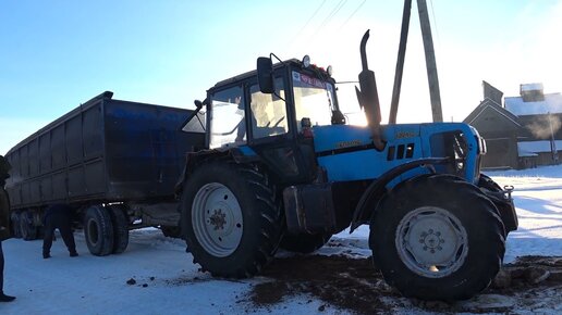 Трактор МТЗ-82, МТЗ 1221 Беларус и неподъёмный прицеп.