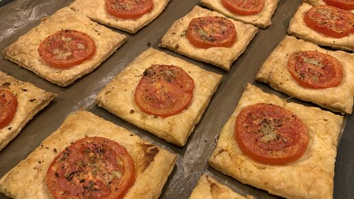 Супербыстрая и простая закуска из слоеного теста и помидор. "Улетает" со стола, как семечки, поэтому готовлю снова и снова