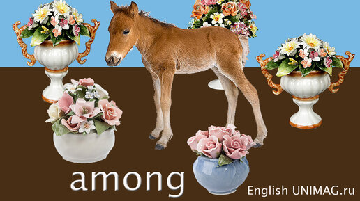 Английский самостоятельно. Английский для детей. Предлоги места amonge - посредине.