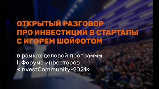 Открытый разговор про инвестиции в стартапы с Игорем Шойфотом