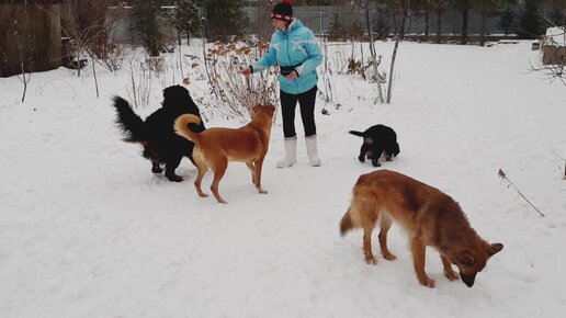 Ден учится правильному поведению с другими собаками