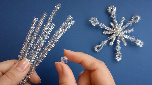 Снежинка из бусинок и синельной проволоки без клея ❄ Новогоднее украшение своими руками
