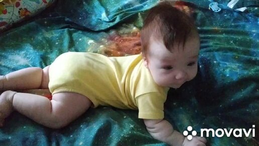 Мама уговаривает четырёхмесячного сына поползти