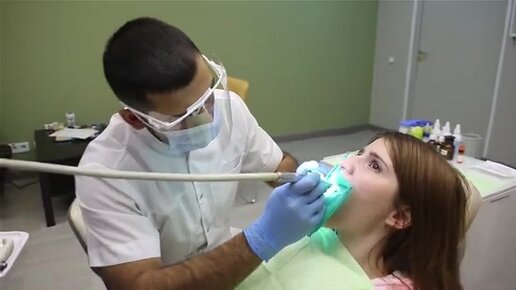 Врач-стоматолог Рустамов Арзуман Султанович за работой - лечение кариеса
