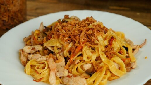 Самодельная яичная лапша с курицей и овощами