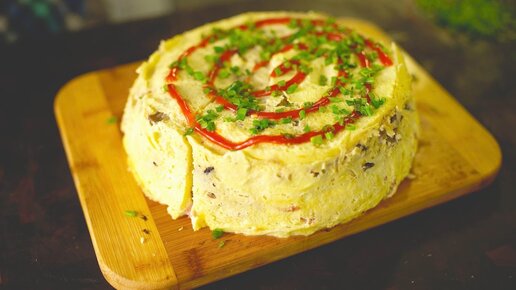 Трехслойный торт-омлет с любимыми начинками!