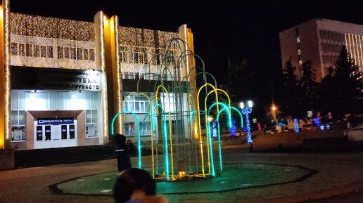 Вечерний город Пятигорск, инсталляция из разноцветных огоньков