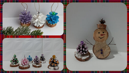 Новогодние поделки из шишек.Елка.Снеговик.елочные игрушки