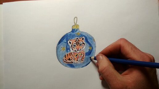 Рисуем Елочную игрушку с символом 2022 года - тигром