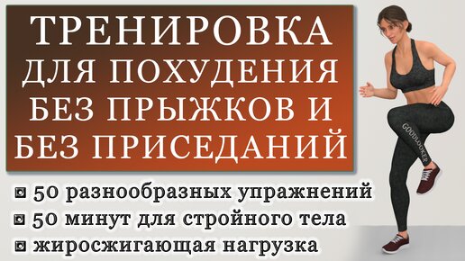 Жиросжигающая тренировка для похудения: 50 упражнений без повторов, без приседаний и без прыжков, для любого уровня (50 минут)