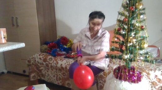 Ох и трудная эта работа, завязать шарики узлом. Красавица елка, не так ли
