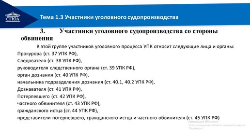 Уголовный процесс лекция 1 3 ч 1 Участники уголовного судопроизводства