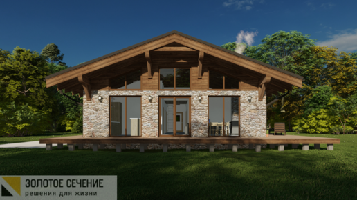 Проект дома в стиле Шале. Одноэтажный. 120 кв м из газобетона. Второй свет. Панорамные окна.