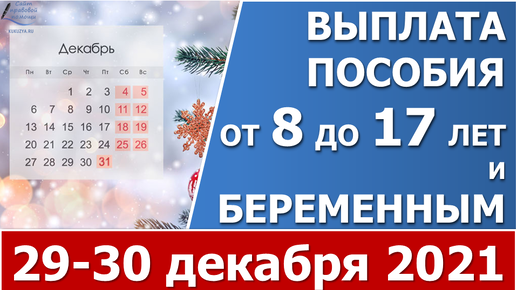 Когда придут выплаты на детей от 8 до 17 лет и беременным в декабре 2021 за праздничные дни января 2022 г.