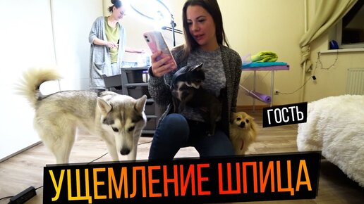 Хаски и чихуахуа присматривают за шпицем- гостем. Чихуахуа строгий надзорщик!