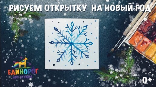Как нарисовать снежинку, рисуем открытку на Новый год.