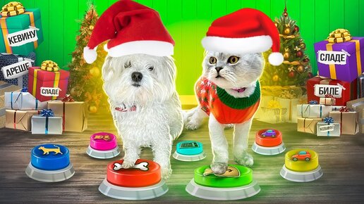 ЗВЕРОДЕТИ УПРАВЛЯЮТ нашими ПОДАРКАМИ С ПОМОЩЬЮ КНОПОК! 100 подарков на Новый год для котов и собак