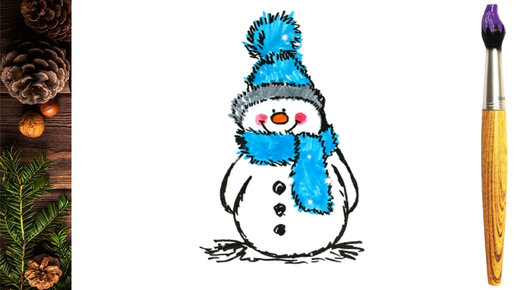Как нарисовать Снеговика. Мультик раскраска для детей. Мультик раскраска простые рисунки для детей